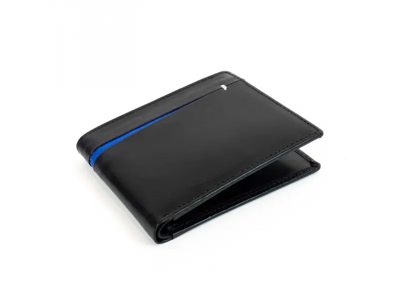 Мъжки портфейл - Блу, Качествен мъжки портфейл от здрава ествествена кожа в черен цвят с място за банкноти, лични документи, дебитни карти.