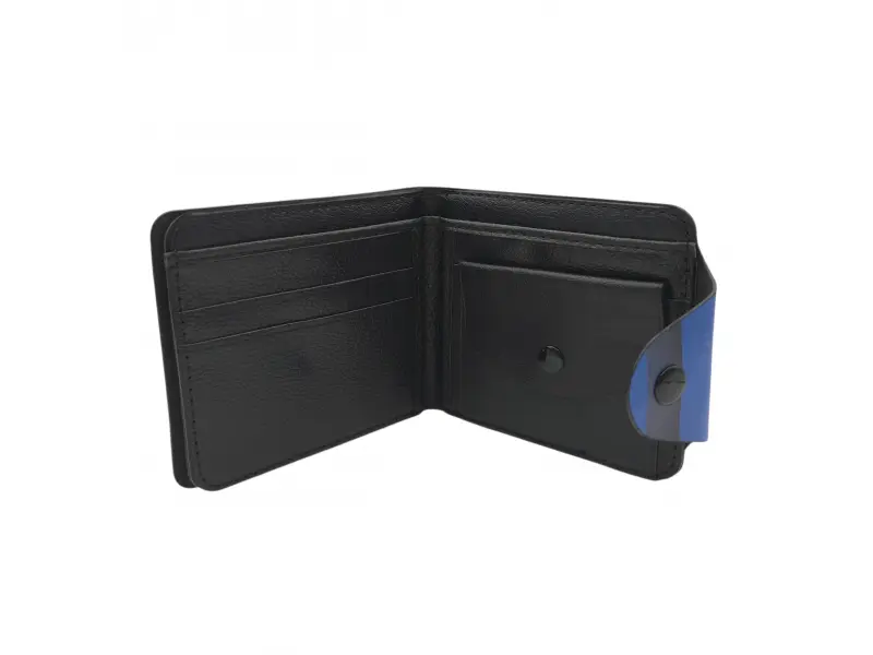 Стилен мъжки портфейл за футболни фенове - Мъжки портфейл от еко кожа. - Отделенение за банкноти. - Слотове за карти и лични документи. - Монетник с копче тик-так.