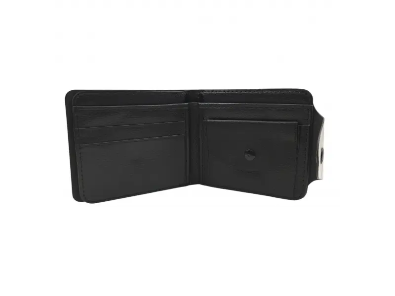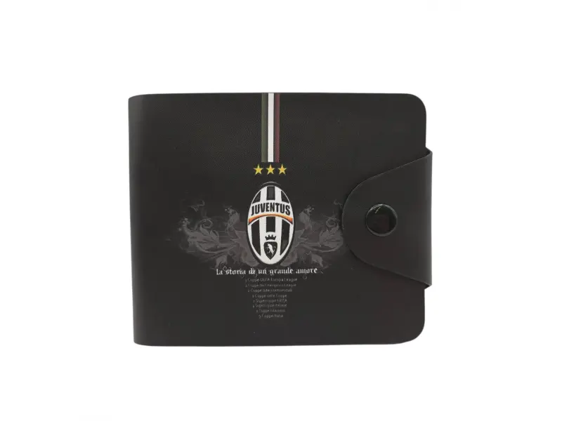 Удобен мъжки портфейл за футболни фенове - Мъжки портфейл от еко кожа. - Отделенение за банкноти. - Слотове за карти и лични документи. - Монетник с копче тик-так.