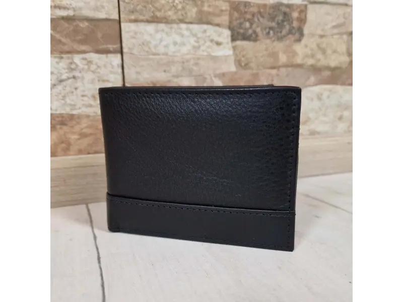 Качествен мъжки портфейл - Мъжки портфейл от естествена кожа. - Отделенение за банкноти. - Слотове за карти и лични документи. - Отделение за монети закопчаващо се с копче.
