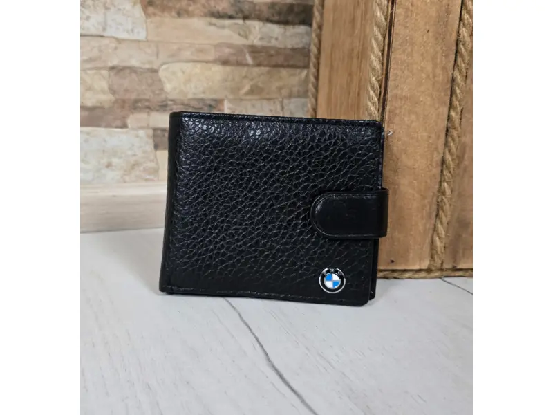 Портфейл от естествена кожа за феновете на БМВ - Мъжки портфейл от естествена кожа. - Отделенение за банкноти. - Вътрешен джоб с цип за банкноти. - Слотове за карти и лични документи. - Отделение за монети закопчаващо се с копче.