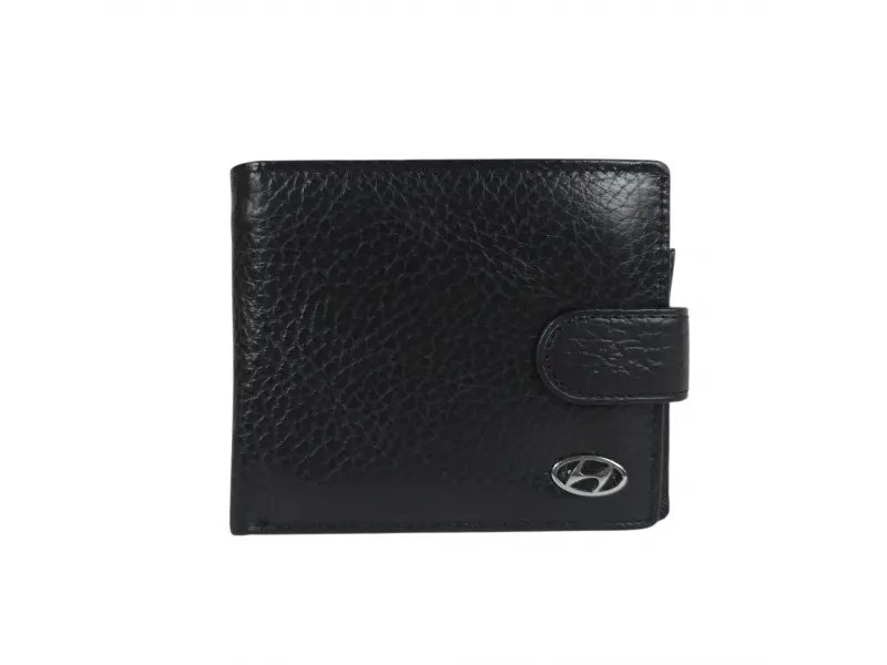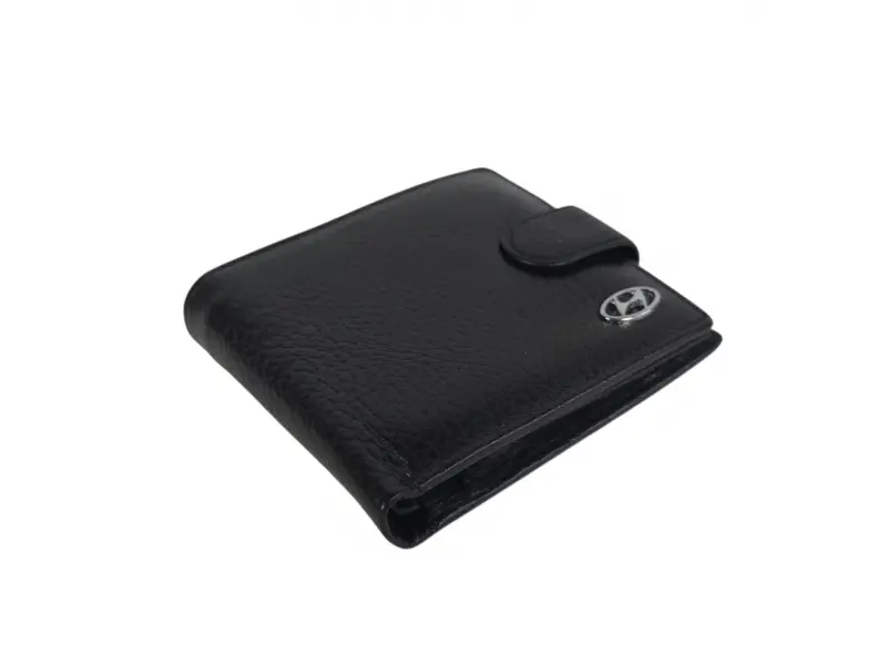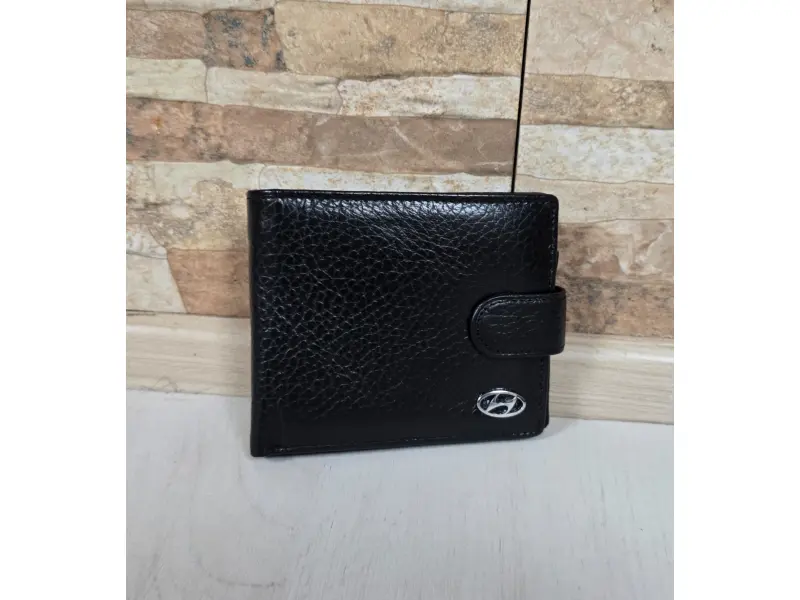 Портфейл от естествена кожа с лого на Хюндай - Мъжки портфейл от естествена кожа. - Отделенение за банкноти. - Вътрешен джоб с цип за банкноти. - Слотове за карти и лични документи. - Отделение за монети закопчаващо се с копче.