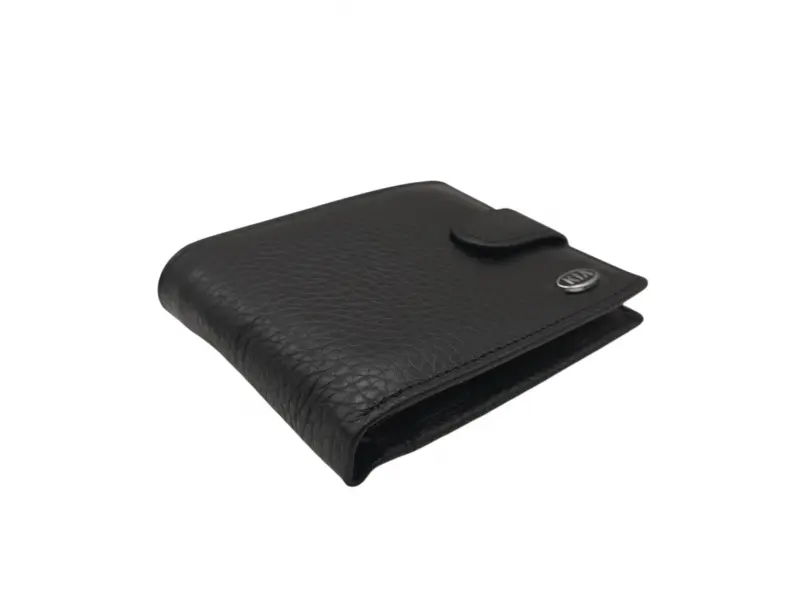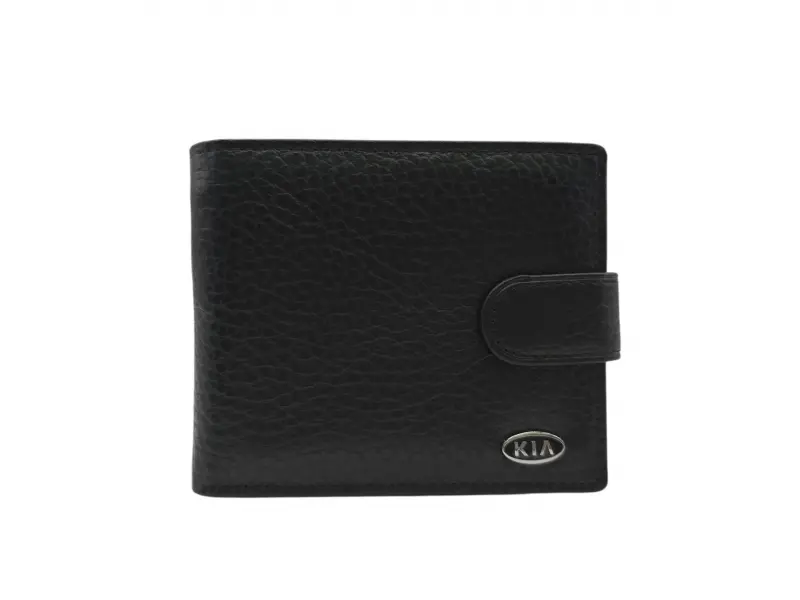 Мъжки портфейл от естествена кожа със закопчалка с логото на автомобил Киа. Идеален подарък за феновете, любителите и притежателите на автомобил Киа.