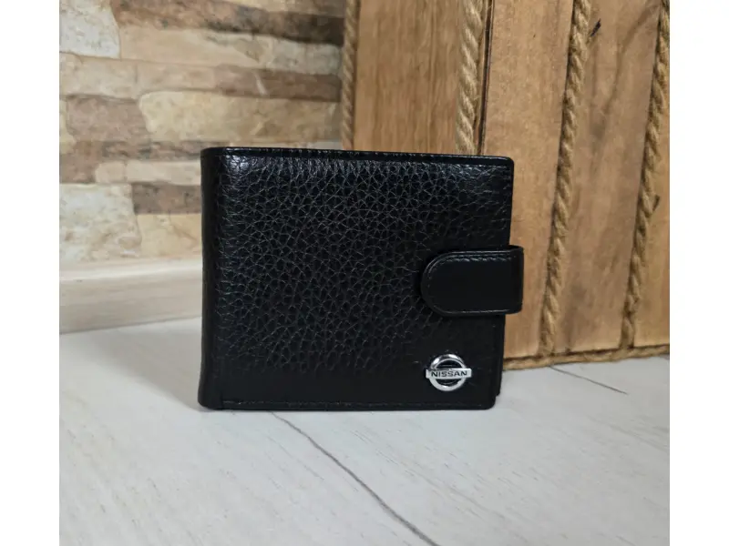 Портфейл от естествена кожа за феновете на Нисан - Мъжки портфейл от естествена кожа. - Отделенение за банкноти. - Вътрешен джоб с цип за банкноти. - Слотове за карти и лични документи. - Отделение за монети закопчаващо се с копче.