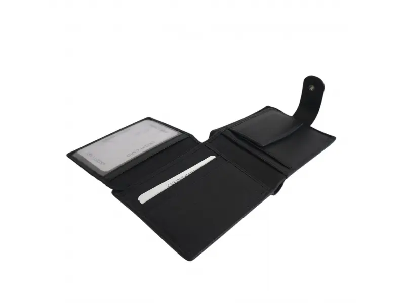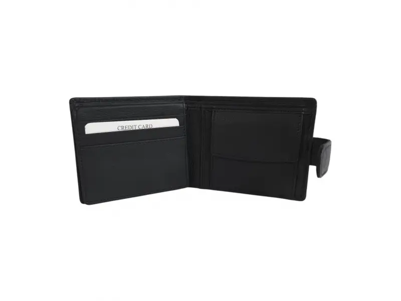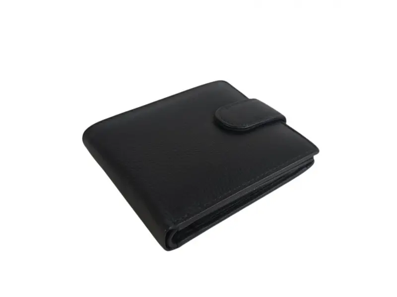 Висококачествен мъжки портфейл от естествена кожа. Кожен порфейл с удобно разпределение за банкноти, монети, карти и лични документи. Класически мъжки портфейл със закопчалка