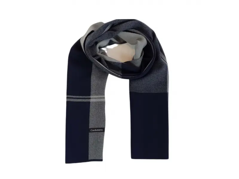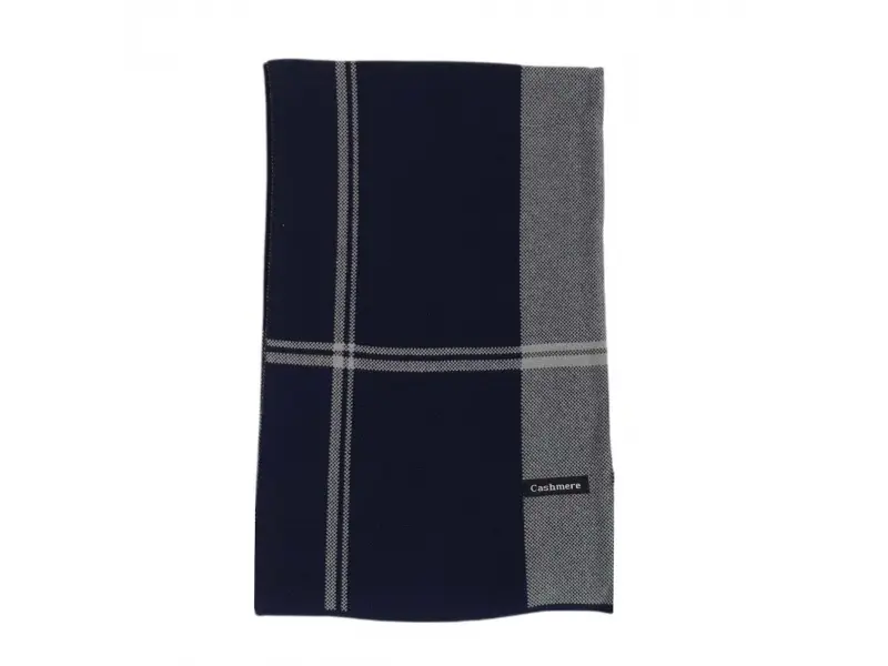 Тъмно син мъжки шал в интересно съчетание на цветовете. Качествен шал подходящ както за студените есенни дни така и за зимния сезон.