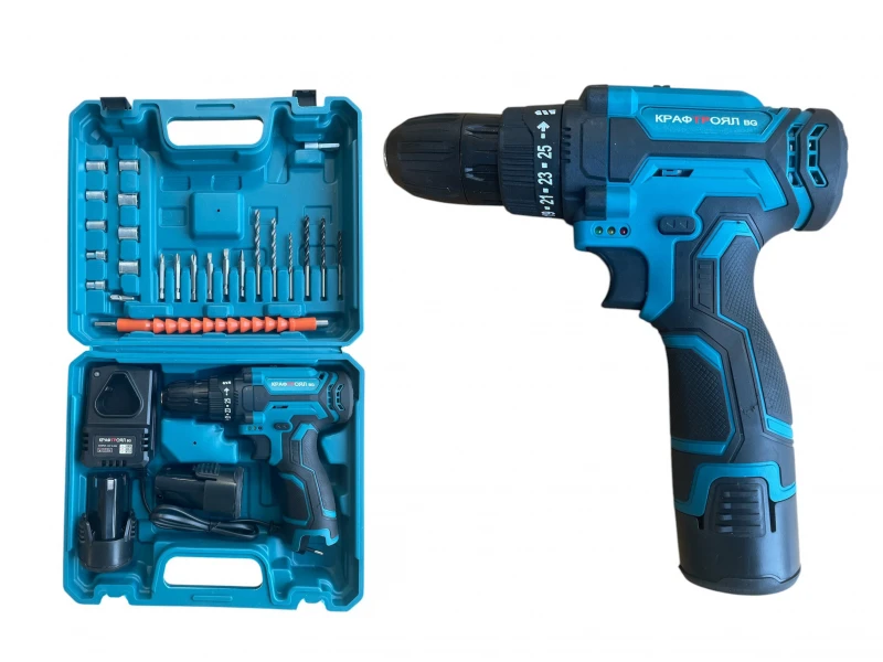 Мини Акумулаторен винтоверт KraftRoyal с две батерии + 24 части инстурменти