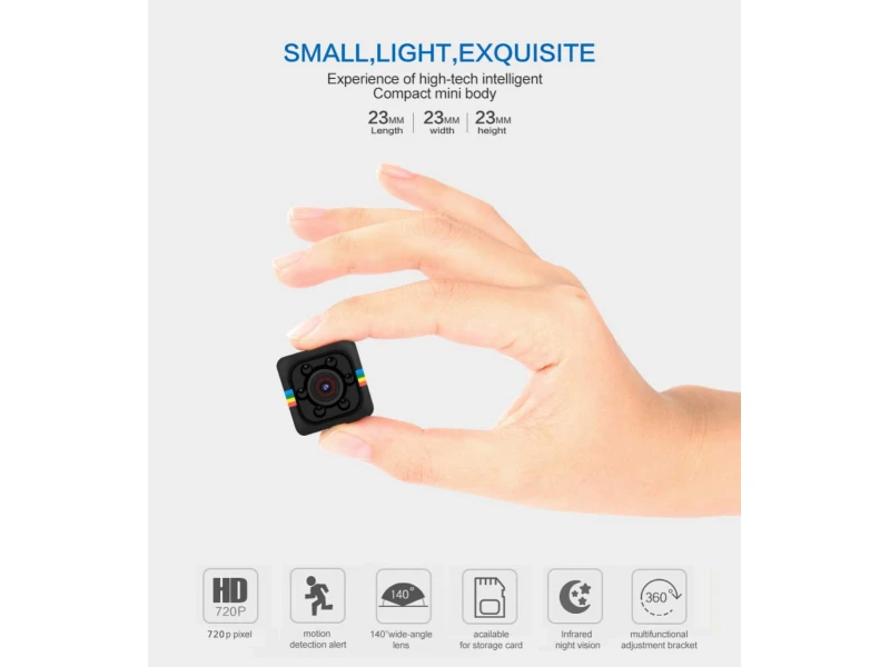 Тази мини камера е идеалното решение за дискретно и удобно наблюдение в различни ситуации, като предлага висока резолюция и възможност за запис при слаба светлина. Благодарение на компактния си размер, камерата може да бъде монтирана на труднодостъпни места, като например върху дрехи, каска, кола или други подвижни и неподвижни обекти.