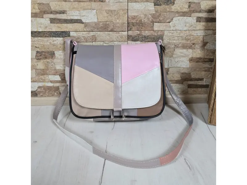 Многоцветна дамска чанта от естествена кожа. Дамска чанта с капак с удобни отделения с дълга регулираща се дръжка. Кожена дамска чанта на намалена цена.