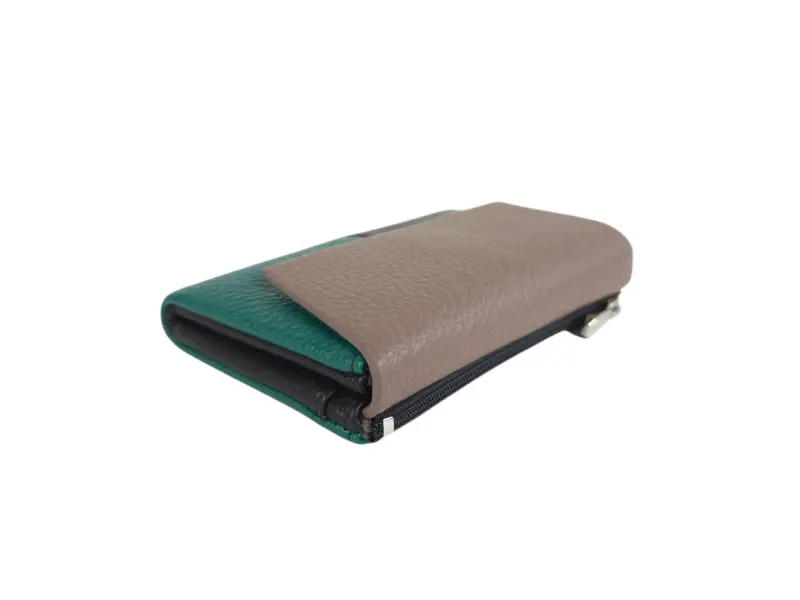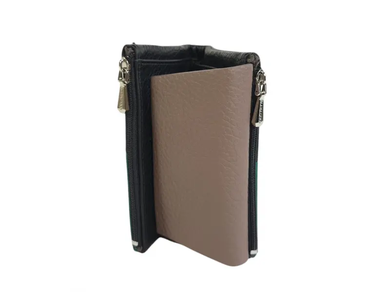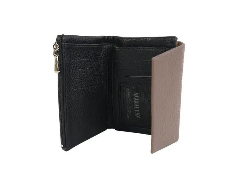 Портмонето разполага с отделения за карти, отделение за банкноти и джоб за монети с цип.