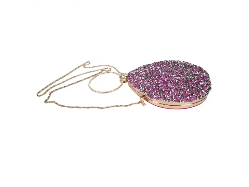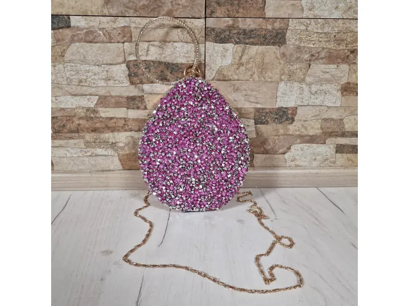 Интересен модел елегантна чанта - Официална дамска чанта с едно отделение. - Отваряне и затваряне с механизъм. - Златен кант. - Дръжка за носене в ръка. - Дълга дръжка тип верижка.