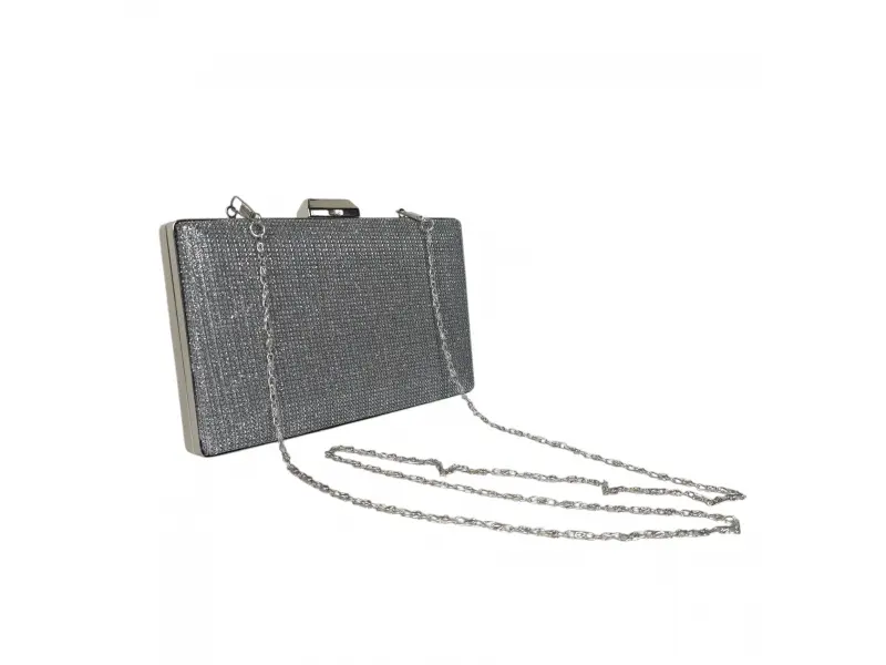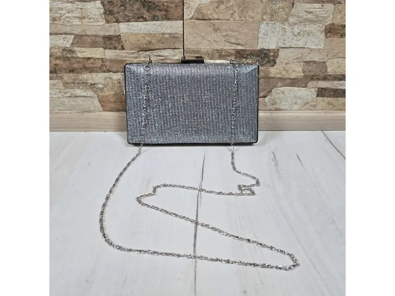 Вечерна дамска чанта - Официална дамска чанта с едно отделение. - Отваряне и затваряне с механизъм. - Метален кант. - Дълга дръжка тип верижка.
