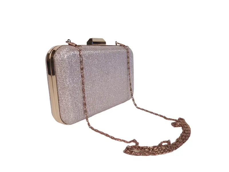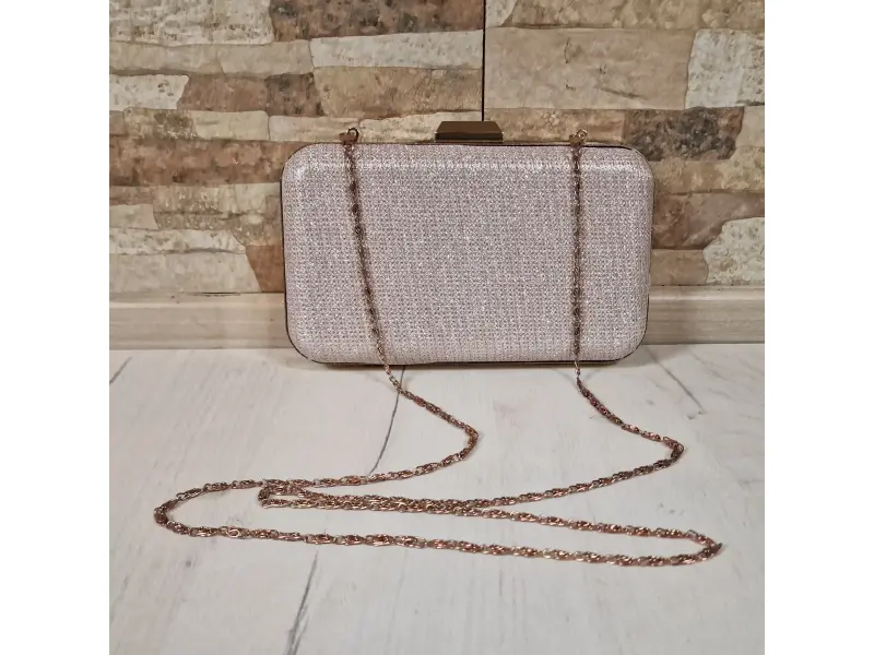 Розова абитуриентска чанта - Официална дамска чанта с едно отделение. - Отваряне и затваряне с механизъм. - Златен кант. - Дълга дръжка тип верижка.
