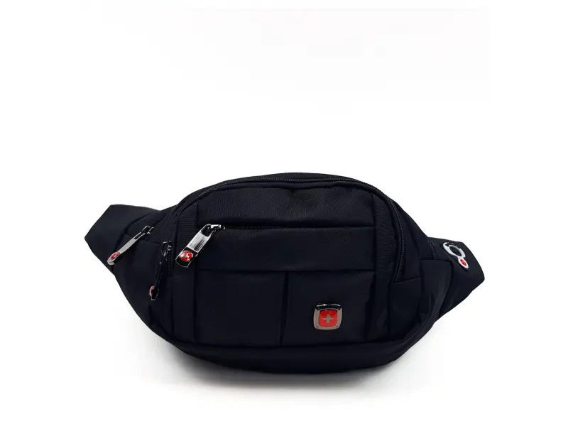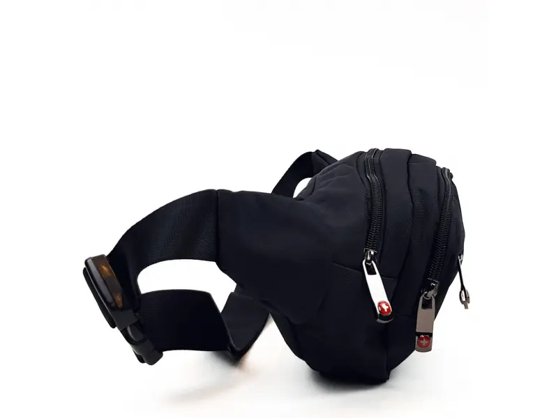 Паласка - здрава материя 04. Качествена мъжка чанта за през кръста от здрава материя. Мъжка паласка в черен цвят с кръст и колан от полиестер от онлайн магазин ePazar.bg