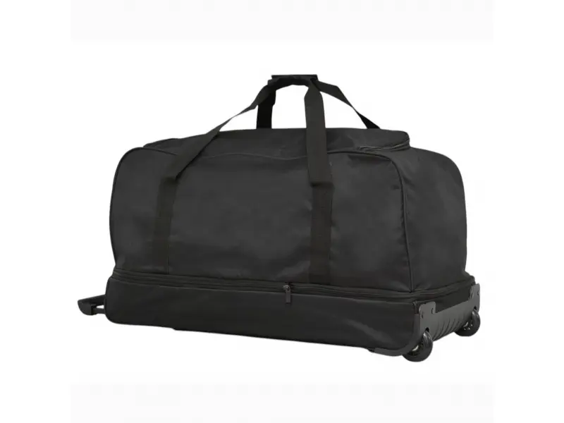 Чанта на колела на промо цена - Чанта с две колела и теглич - Едно основно отделение с двупосочен цип. - Два предни джоба с цип. - Разширяване с цип. - Две шини отдолу за здравина. - Удобни дръжки за носене в ръка.