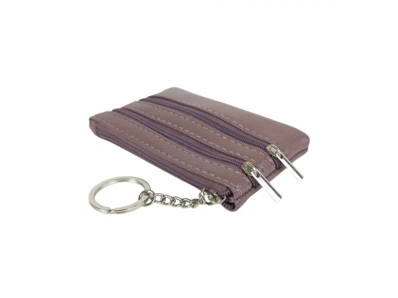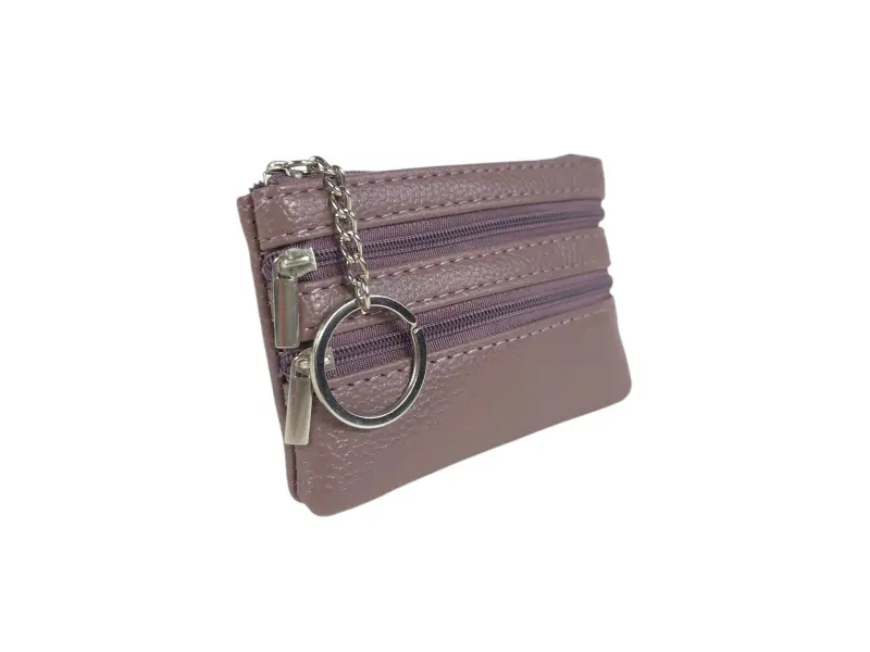 Кожен ключодържател в цвят пепел от рози - Портмоне - ключодържател от естествена кожа. - Отделение за банкноти. - Две отделения за монети. - Ринг за закачане на ключове.