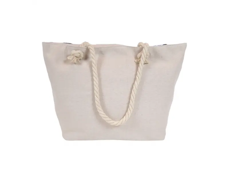 Качествена плажна чанта с цветя с едно отделение с цип и здрави въжени дръжки.