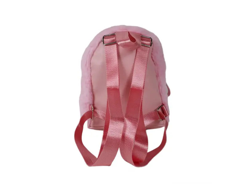 Раницата е изработена от плюш, което я прави мека и приятна на допир.