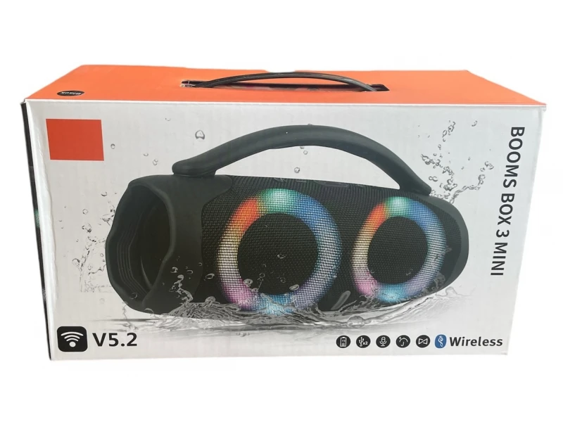 Портативна мощна блутут колона Booms Box 3 Mini RGB - Черен