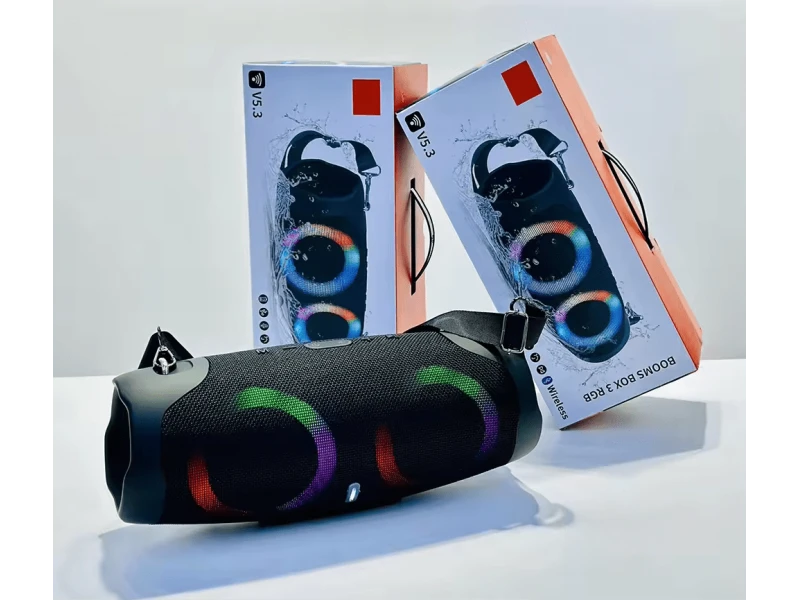 Голяма портативна мощна блутут колона Booms Box 3 RGB - Черен