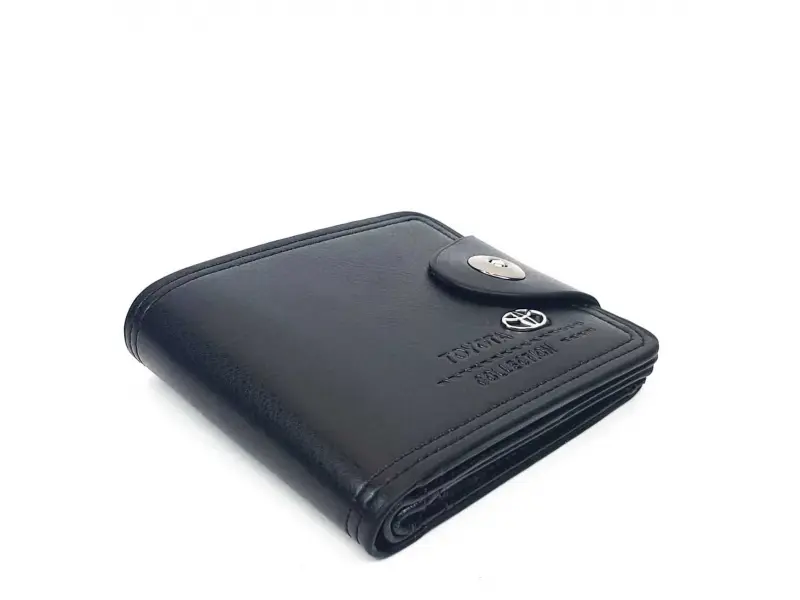 Мъжки портфейл от еко кожа с закопчалка на марката коли Тойота. Удобен модел с прегради за банкноти , слотове за карти и място за документи , отделение за монети. Страхотен портфейл за феновете на марката Тойота.