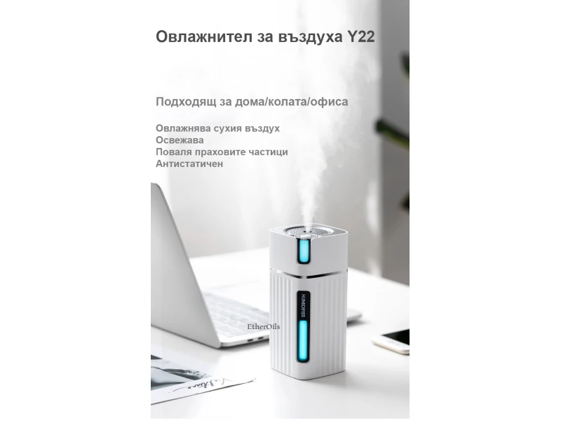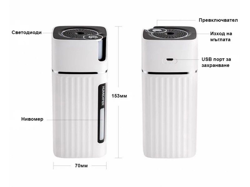 Интелигентен ултразвуков овлажнител за въздух, улавящ жестове, 2000 mAh, 800 мл.