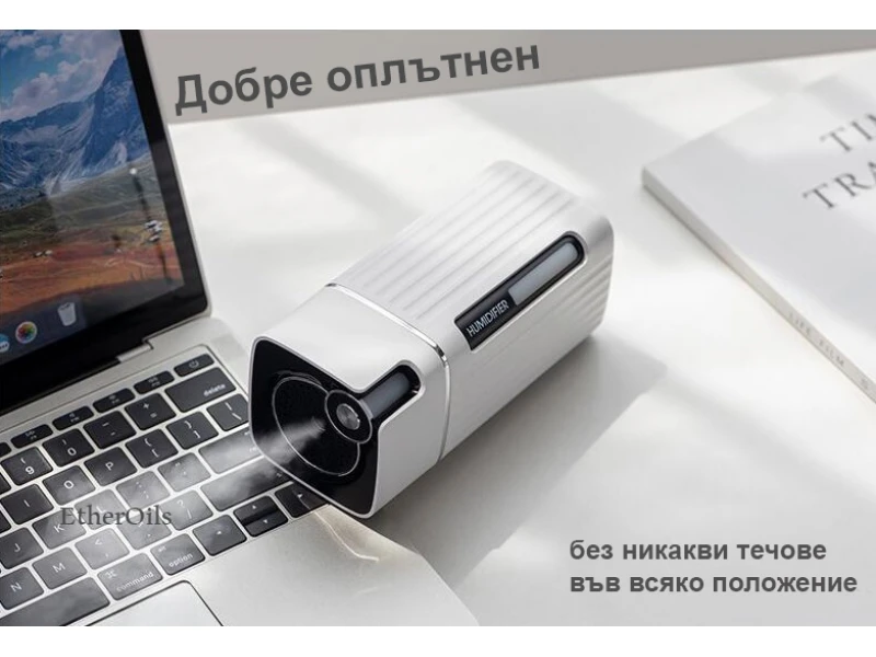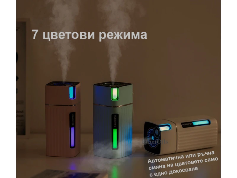 Овлажнител за въздух с нощна светлина в 7 цвята. Овлажнител за въздух или ултразвуков дифузер за етерични масла. Всичко нужно за вашата арома терапия на едно място.