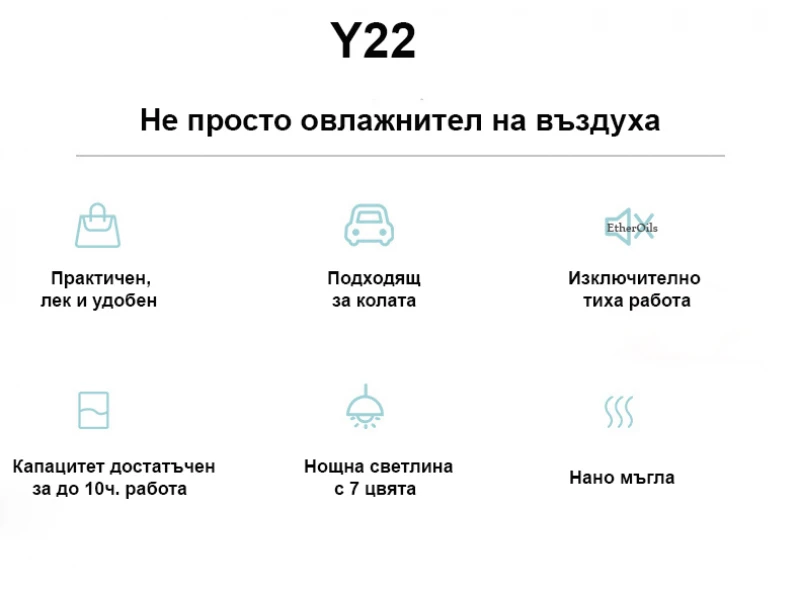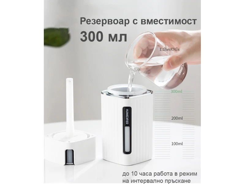 • Практичен ултразвуков овлажнител за въздух със седемцветна нощтна светлина, 300 мл