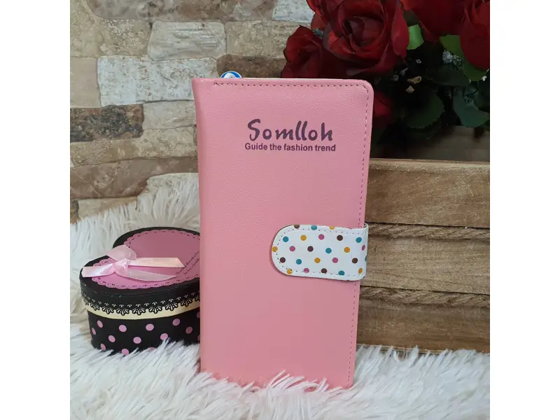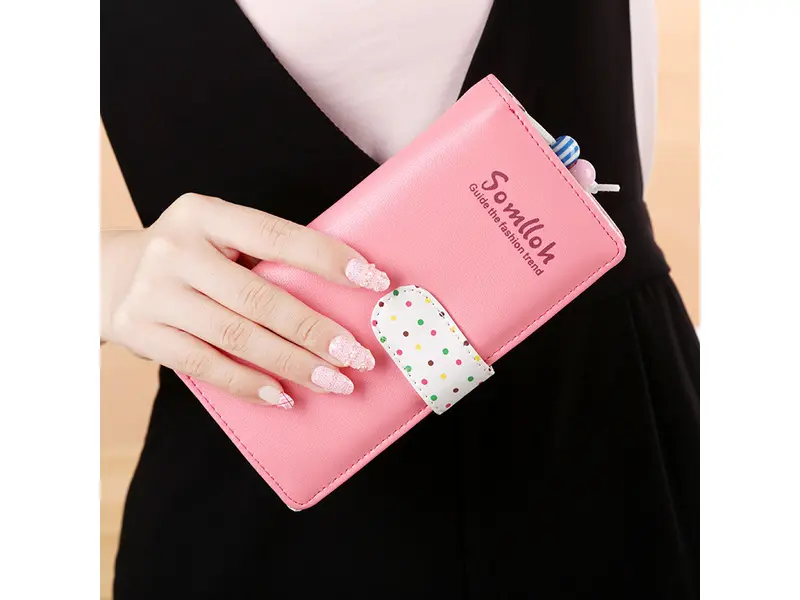 Прасковено голямо портмоне - Somlloh. Голямо дамско портмоне в прасковен цвят и цветни точки. Удобно дамско портмоне на страхотна оферта може да отриета в www.ePazar.bg