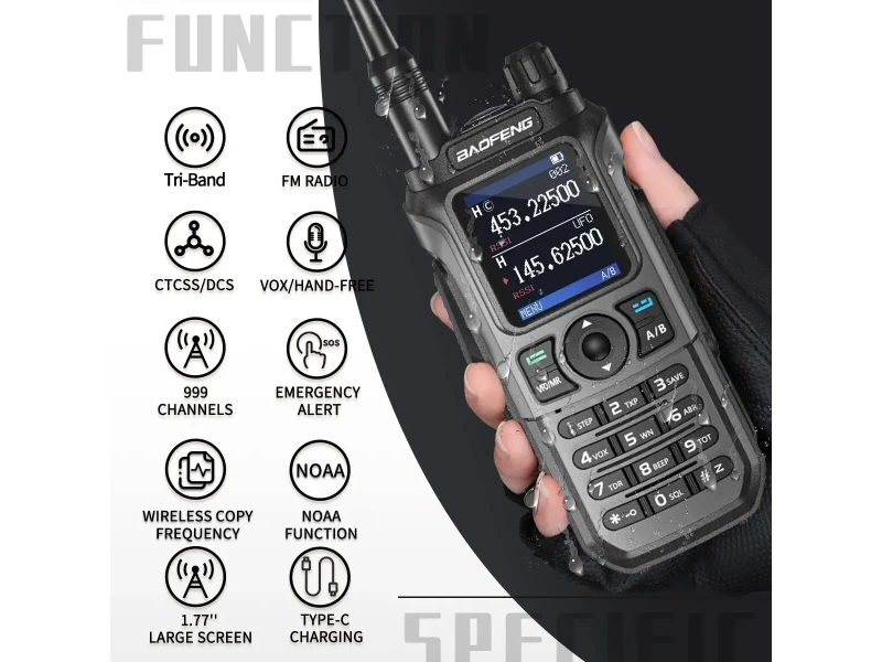 • Двуканална работа (Dual Band): Възможност за работа на две различни честоти (VHF/UHF) едновременно, което увеличава ефективността при комуникация