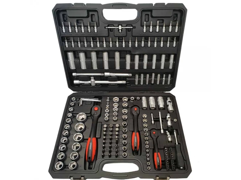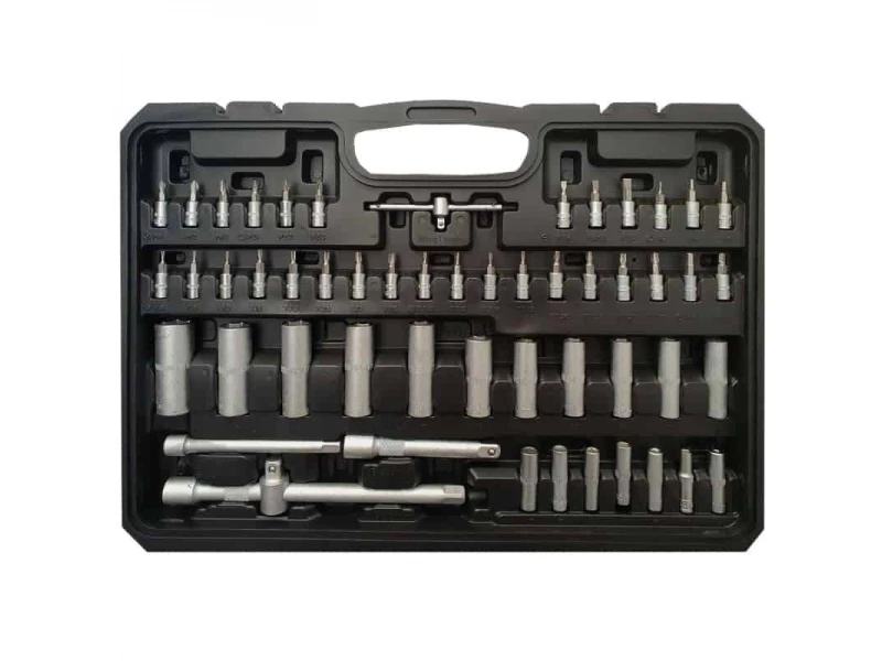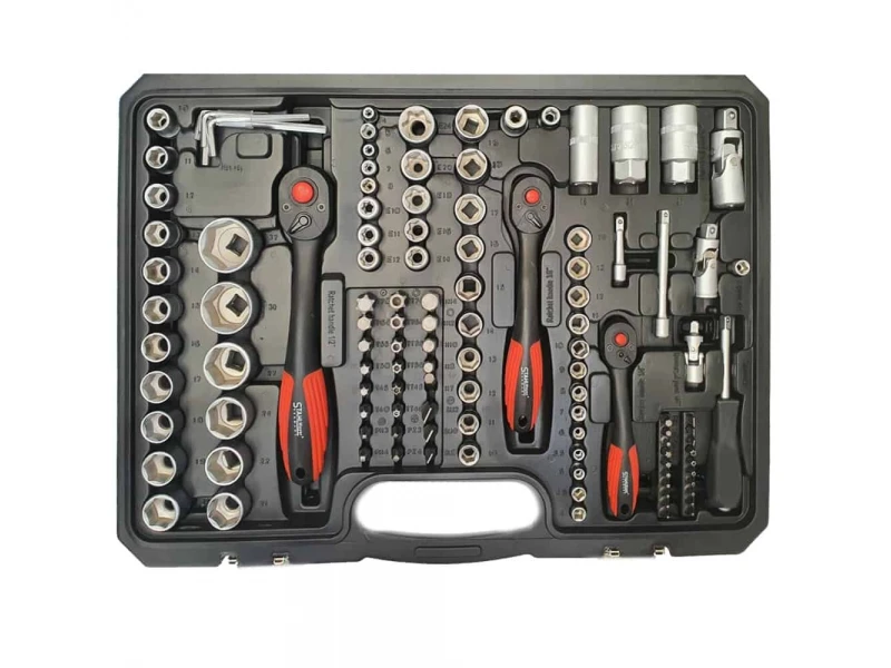 1/2: - Тресчотка- Удължение 125 + 250 mm- Кардан - Вложка за свещи 16 + 21 милиметра- Адаптери 12,5 (1/2) до 8 мм (5/16)- 17 вложки - 10-32 mm- 5x Дълбоки вложки 16-17-18-19-22 мм- 2x вложки Е-тип E 20-243/8":- Тресчотка- Удължение 125 mm- Кардан- Ключ за свещи 18 mm- 10 вложки - 10-11-12-13-14-15-16-17-18-19 mm- 6 дълбоки вложки - 10-11-12-13-14-15 mm- 6 вложки Е-тип - 10-11-12-14-16-18- Адаптер 10 (3/8) до 8 мм 5.16 "1/4":- Тресчотка- Кардан- Удължение 50 + 100 mm- Върток- Държач за битове- 13 вложки - 4-4.5-5,5-5-6-7-8-9-10-11-12-13-14 mm- 7 дълбоки вложки - 4-5-6-7-8-9-10 mm- 5 вложки Е-тип - 4-5-6-7-8- 30 бита- Адаптер за битове-. 20 бита 1/4" -. 24 бита 5/16"- 7 шестограма от 1,2 до 5 ммПрофесионалното Немско Гедоре KraftRoyal Germany с 172 части разположени в пластмасов куфар, удобен за транспортиране и съхранение на инструментите изключително подходящ както за професионални, така и за любителски цели или подарък на любим човек.