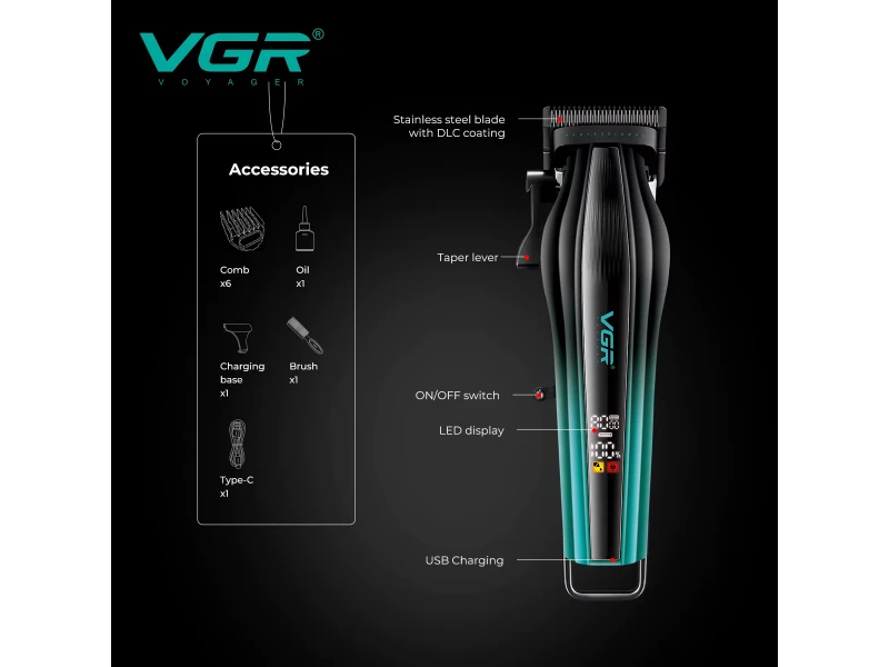 Машинката VGR V-273 е изработена за мъже, които не правят компромис с качеството. Комбинира здрава конструкция, модерни технологии и висока производителност. Подходяща за професионални фризьори, барбери и домашна употреба - тя е повече от просто подстригване.