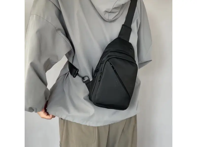 - Мъжка чанта, която може да се носи през гърди, рамо или гръб тип раница.
