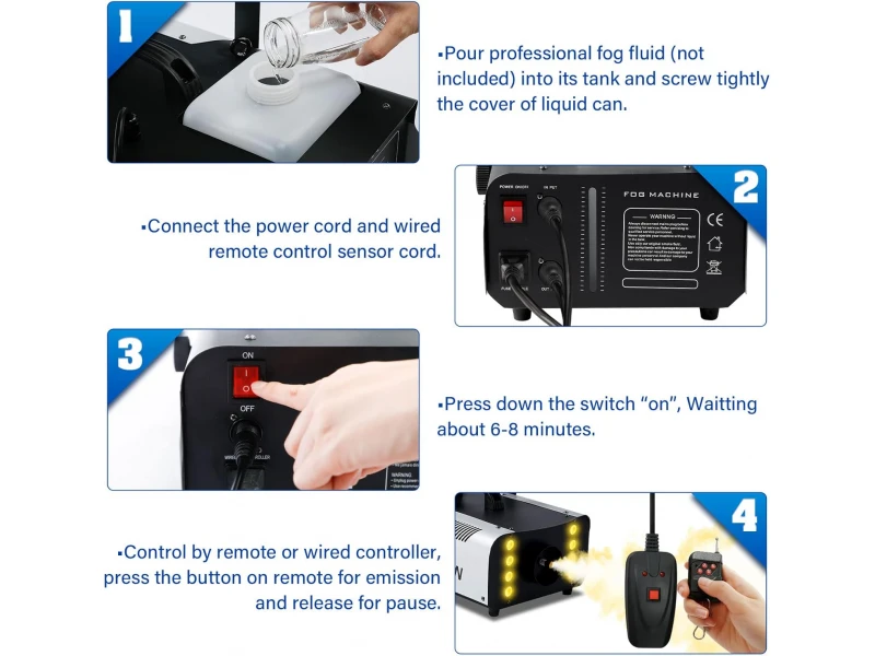 Подходящо за малки събития, партита, кръщенета, сватби, откриване на магазини, компании за събития, dj. Smoke Machine с дистанционно управление е най-добрата джаджа за вашите партита!
