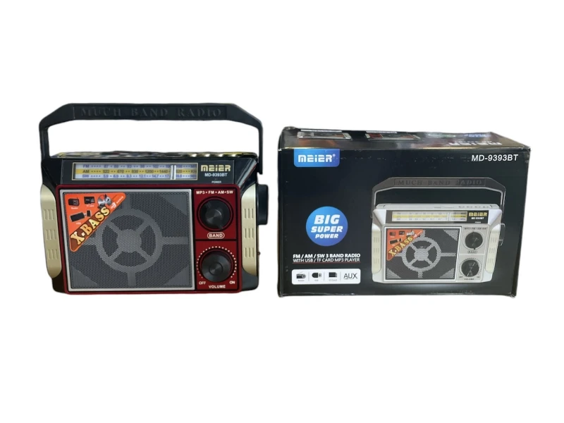 Компактен и стилен преносим радиоприемник, мощен FM радио AM и SW3, Mp3 с USB порт, AUX вход, MP3 Player, акумулаторна батерия, microSD card карта памет за телефон, таблет, лаптоп, смартфон MEIER MD-9393BT