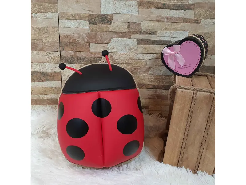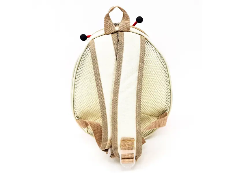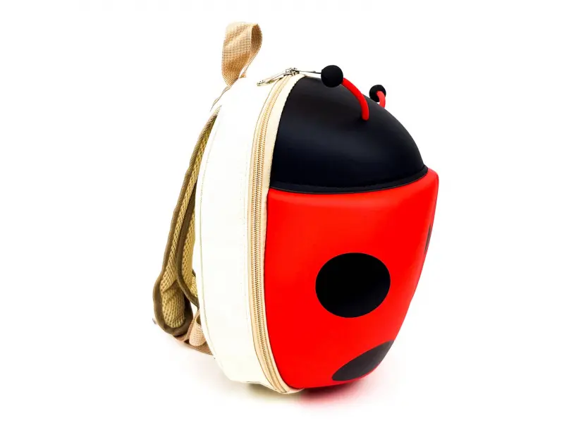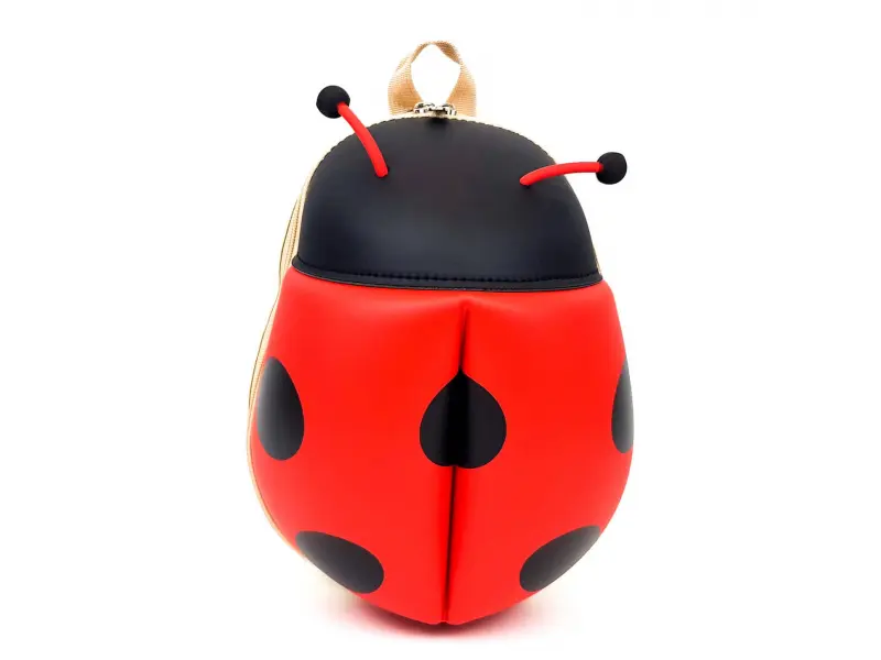 Раницата е с дизайн на калинка, което я прави атрактивна за децата.