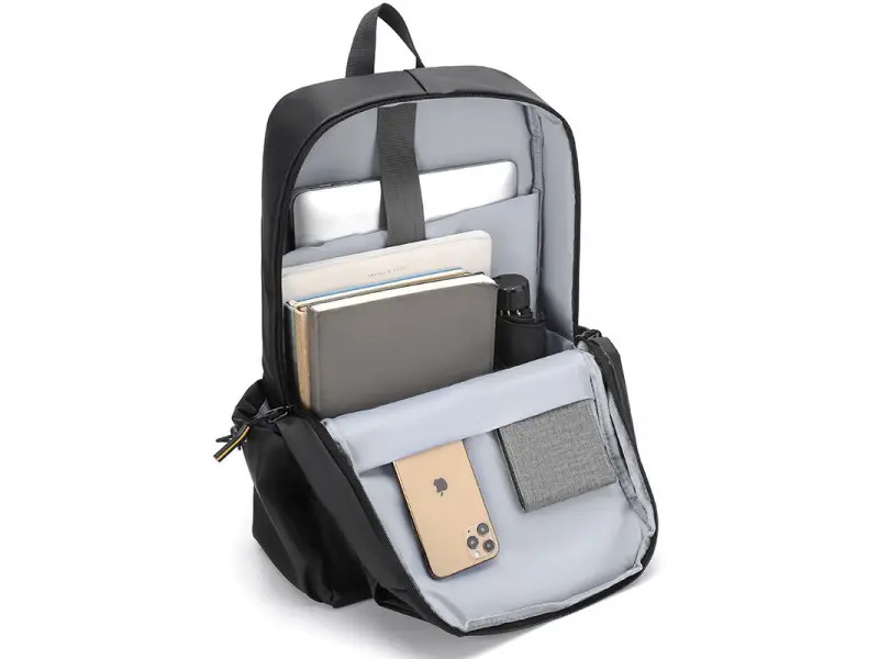 Удобна раница за работа - Едно основно отделение с цип. - Преден джоб с цип. - Заден джоб с цип. - Дръжка за носене в ръка. - Странични джобчета. - Регулиращи се презрамки. - Удобен гръб.