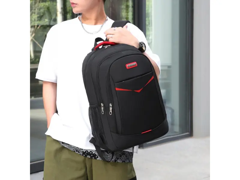 Удобна раница с червен акцент