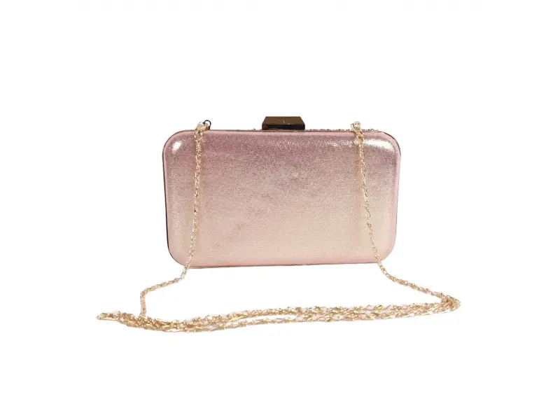 Блестяща дамска чанта за специално събитие - Официална дамска чанта с едно отделение. - Отваряне и затваряне с механизъм. - Златен кант. - Дълга дръжка тип верижка.
