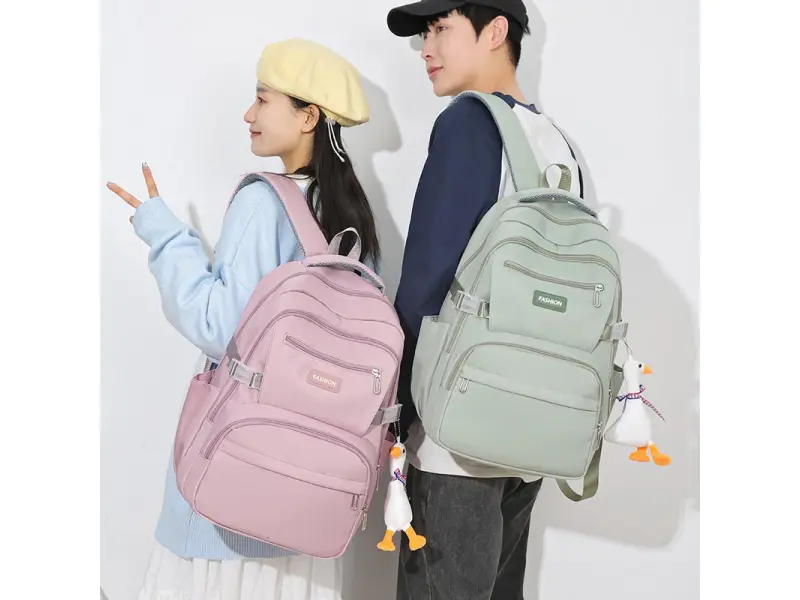 Розова раница подходяща за училище - Голяма раница за училище или спорт. - Две отделения с цип. - Вътрешен джоб без цип. - Два предни джоба с цип. - Странични отделения за бутилки. - Дръжка за носене в ръка. - Регулиращи се презрамки.