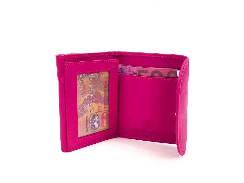 Компактен модел дамско портмоне от естествена кожа - натурална. Удобен модел даже и за малки чанти с място за документи , банкови и визитни карти , отделение дори и за най-големите банкноти от 500 евро. Отделно място за монети. Качествено дамско портмоне в розов цвят.