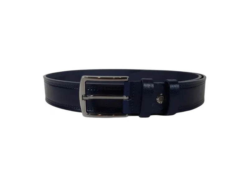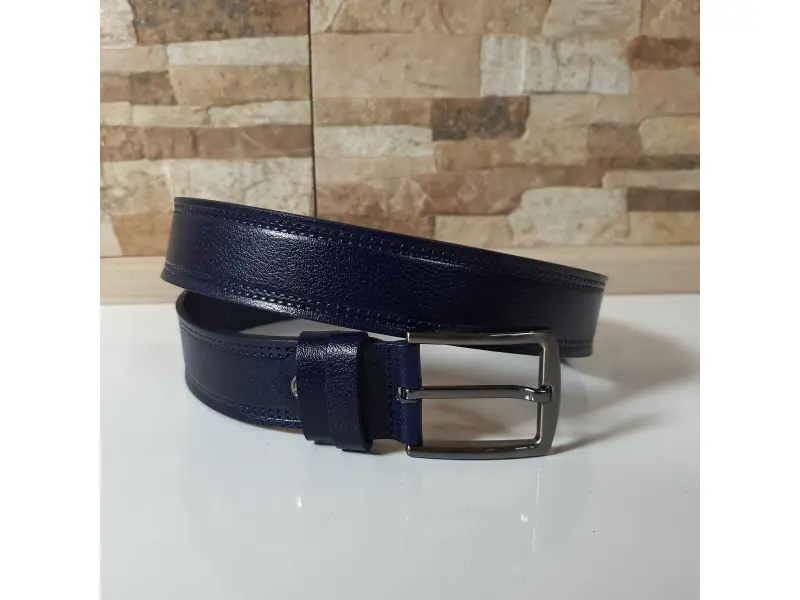 Мъжки колан от качествена естествена телешка кожа. Син колан с метална тока, подходящ за дънки и панталони с възможност за лесно скъсаване.