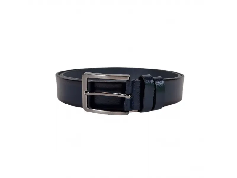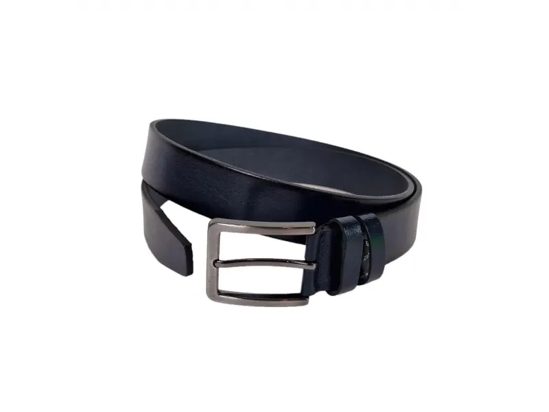 Мъжки колан от качествена естествена телешка кожа. Син колан с метална тока, подходящ за дънки и панталони с възможност за лесно скъсаване.