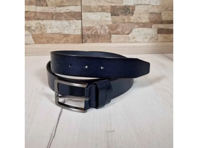 Стилен син колан от естествена кожа Мъжки колан от качествена естествена телешка кожа. Син колан с метална тока, подходящ за дънки и панталони с възможност за лесно скъсаване.
