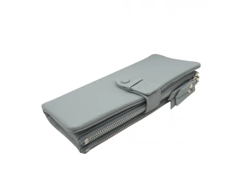Стилно дамско портмоне - Дамско портмоне от еко кожа. - Закопчаване с копче тик-так. - Отделения за карти и лични документи. - Отделение за банкноти. - Отделения за монети с цип.