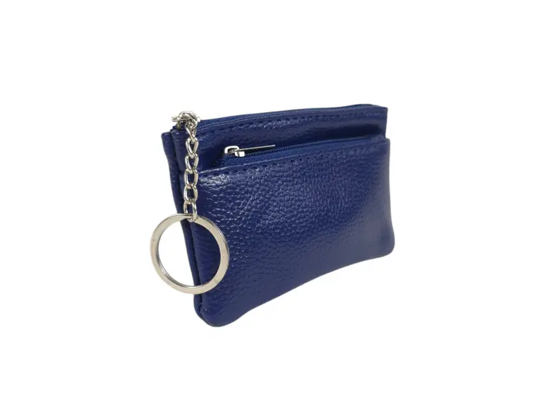 Качествен ключодържател в син цвят - Портмоне - ключодържател от естествена кожа. - Отделение за банкноти. - Отделение за монети. - Ринг за закачане на ключове.