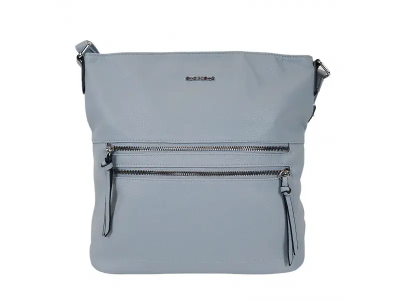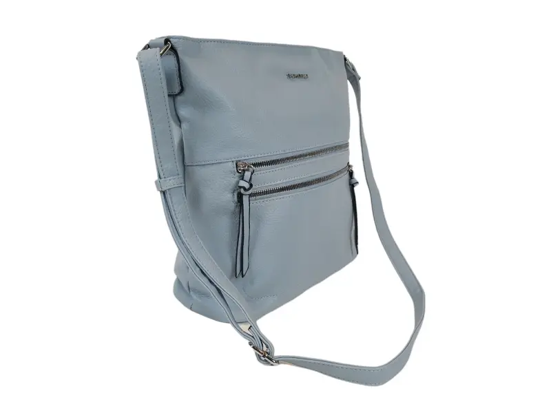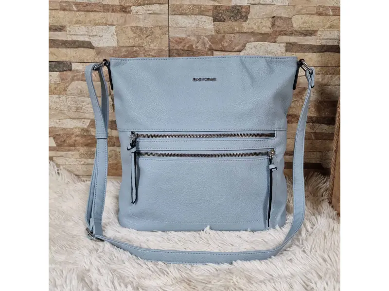Ежедневна дамска чанта в син цвят Удобна дамска чанта тип торба от качествена изкуствена кожа. Синя чанта с едно основно отделение с цип, малко вътрешно джобче с цип, преграда с цип, отделение за телефон или документи, два предни и един заден джоб с цип. Ежедневна чанта с удобна дълга регулираща се дръжка.