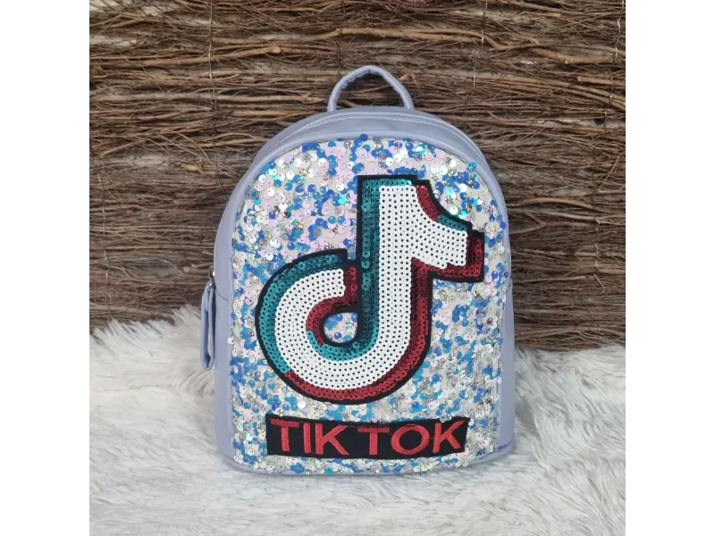 Интересна детска раница - Tik Tok в син цвят с пайети. Детска раница с едно голямо отделение затварящо се с цип. Раница с регулиращи се презрамки и дръжка за носене.