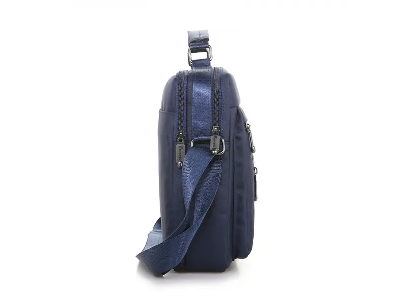 Спортна мъжка чанта за през рамо - Мъжка чанта от качествена материя. - Две основни отделения с цип. - Малък вътрешен джоб с цип. - Два предни джоба с цип. - Заден джоб. - Дръжка за носене в ръка. - Дълга регулираща се дръжка.