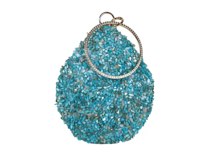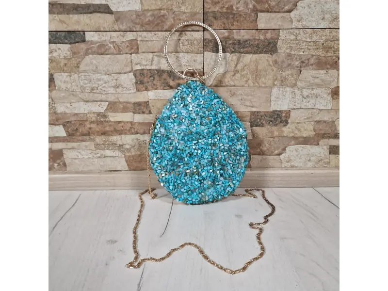 Чантата е в син цвят с елегантен дизайн и има златен кант.